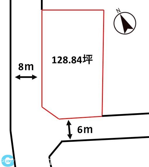 - 【公道】南側道路幅員 6.0m 西側道路付近 8.0m
